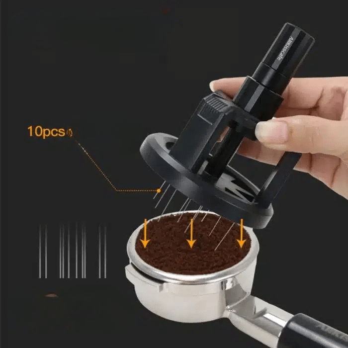 L’agitateur distribue le café de manière uniforme dans le panier, ce qui améliore l’extraction de ton expresso.