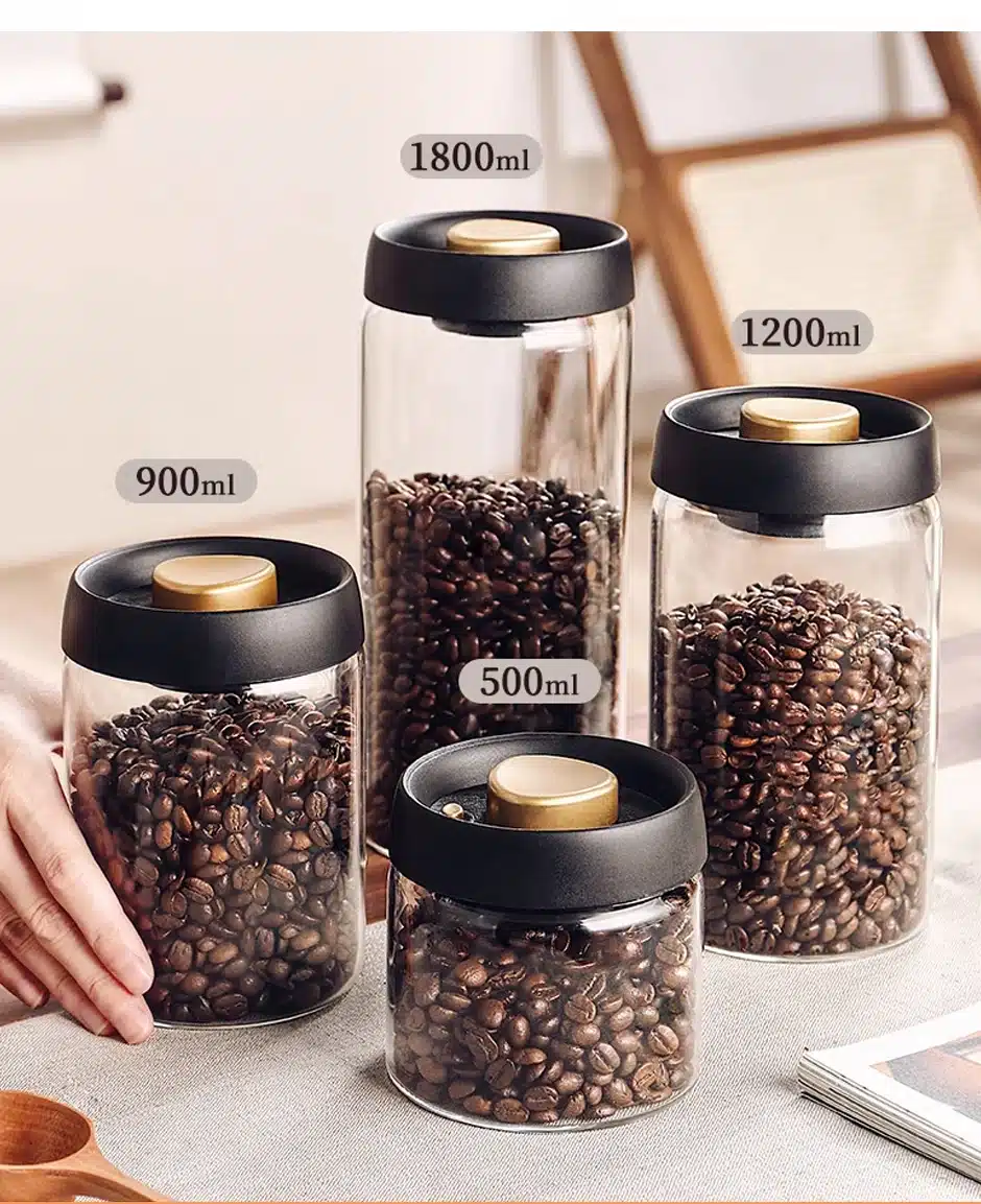 Disponible en plusieurs tailles (500ml, 900ml, 1200ml et 1800ml), ce bocal permet de stocker non seulement du café, mais aussi du thé, des épices, des collations et bien plus encore.