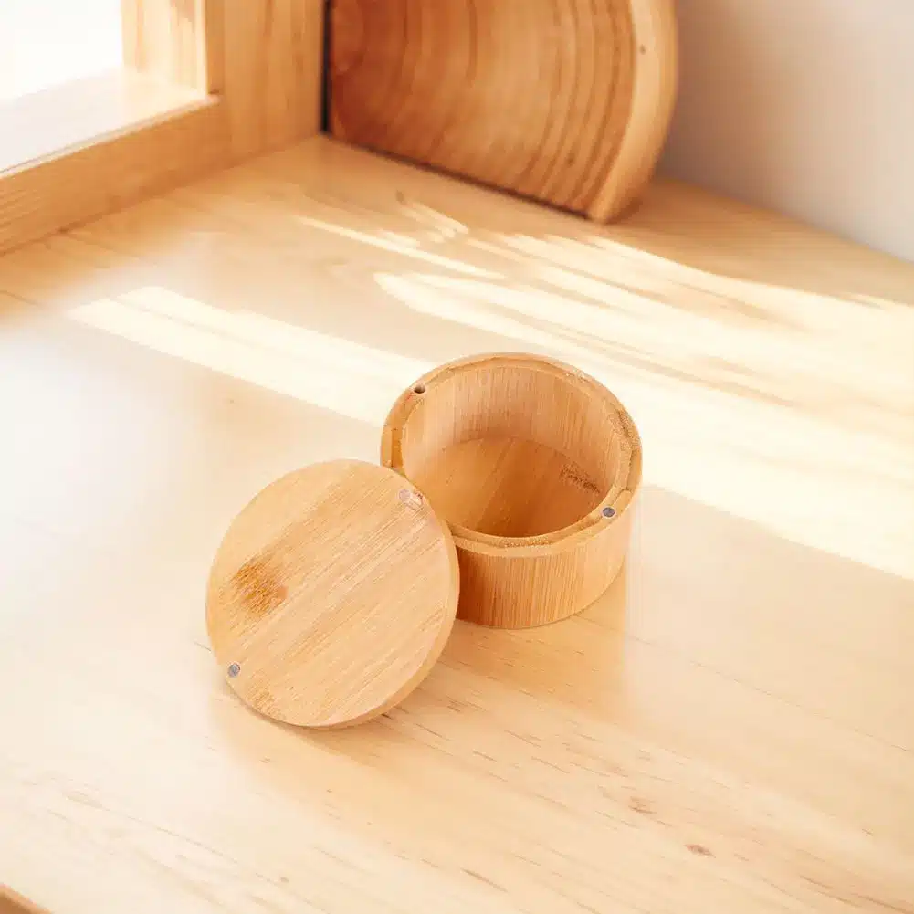 La boîte à marc de café bois est un récipient rond en bambou, conçu pour être à la fois élégant et pratique.