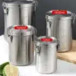 En plus de son aspect élégant, le récipient en acier inox est aussi très seyant, compact, et optimise l’espace de rangement dans vos placards ou votre réfrigérateur.