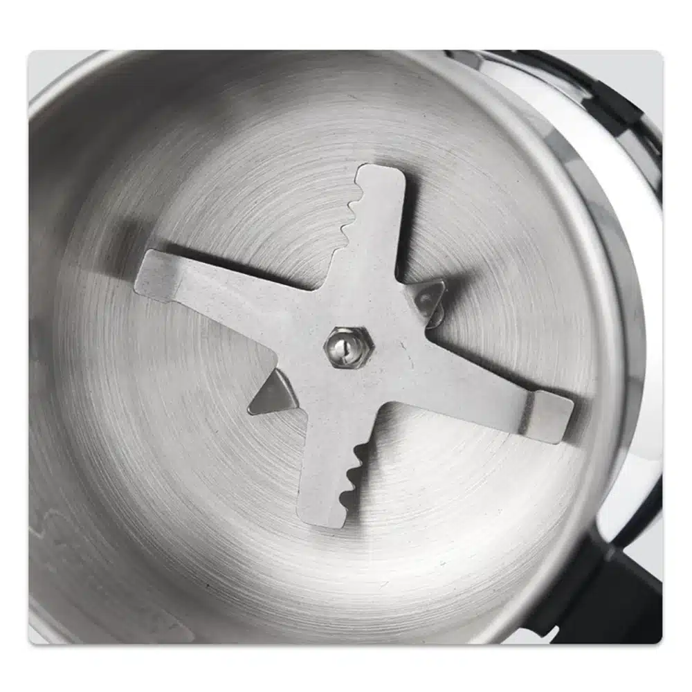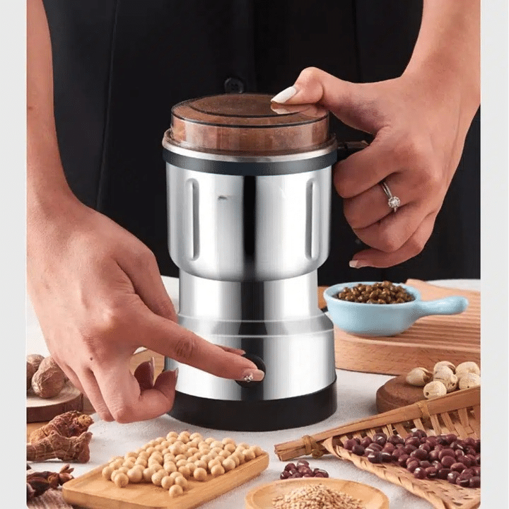 Moulez vos ingrédients rapidement et efficacement avec le broyeur metal, un moulin à café électrique puissant de 300W en acier inoxydable.