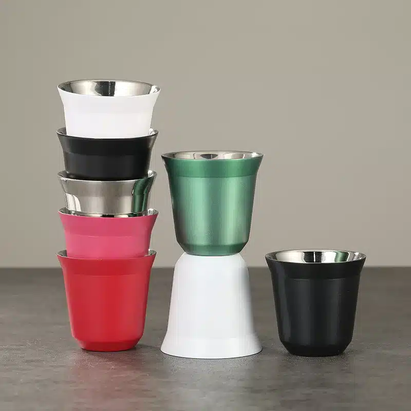 Les tasses à expresso en acier inoxydable 304 sont parfaites pour savourer un café serré dans une petite tasse élégante et pratique.