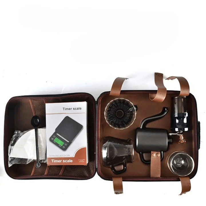 Un kit de café complet en 8 pièces, conçu pour préparer un vrai café artisanal où que tu sois.