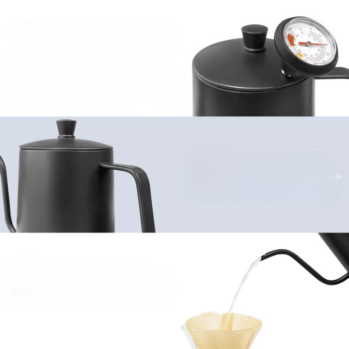 La bouilloire en acier inoxydable garantit une chauffe rapide et uniforme, idéale pour verser l’eau avec précision.