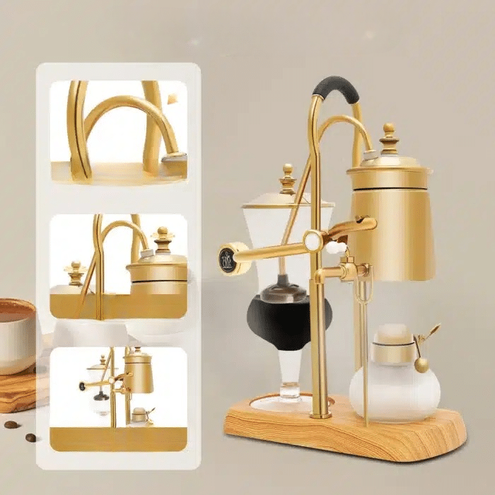 Fonctionne par gravité manuelle : une fois le chauffage arrêté, le café redescend tout seul, prêt à être dégusté.