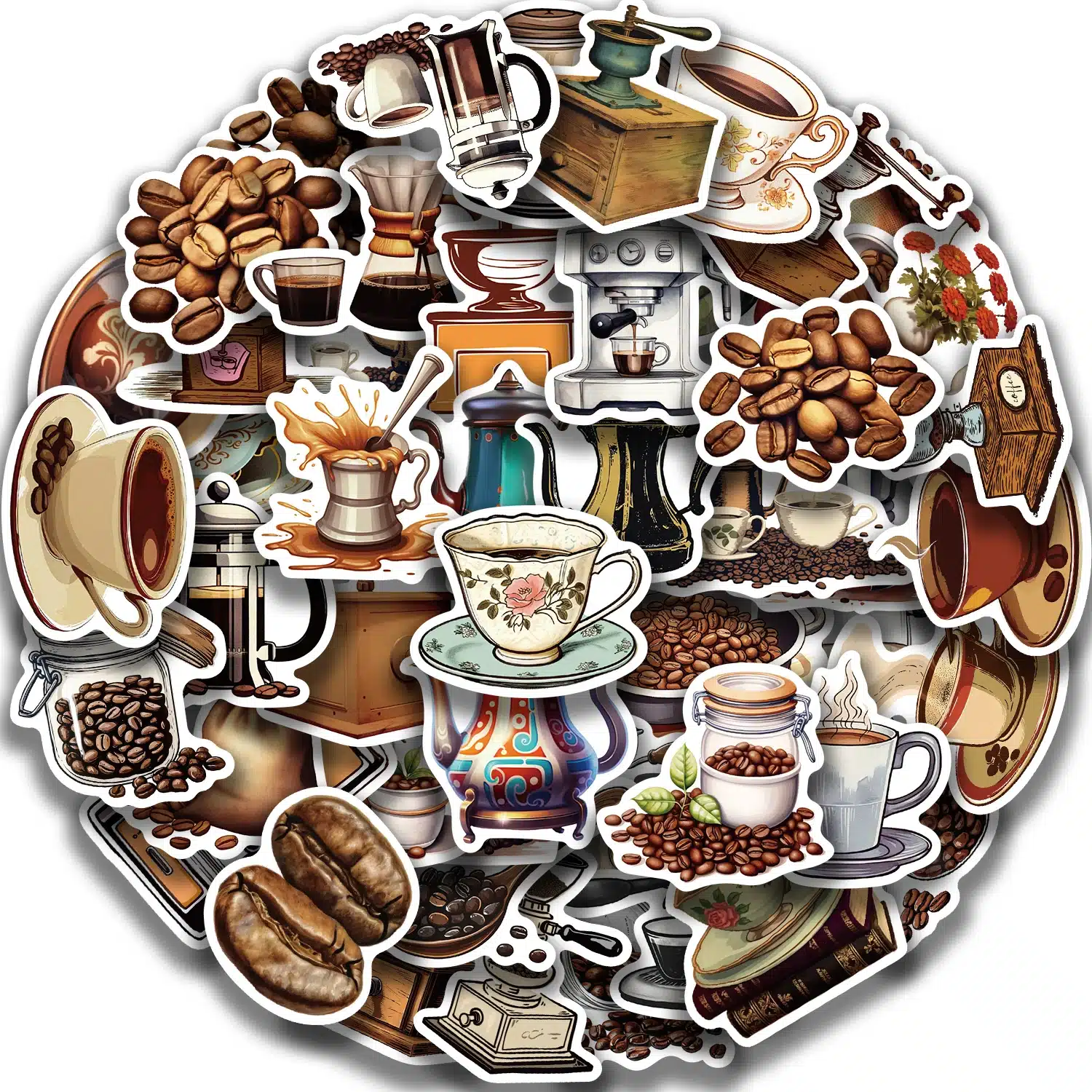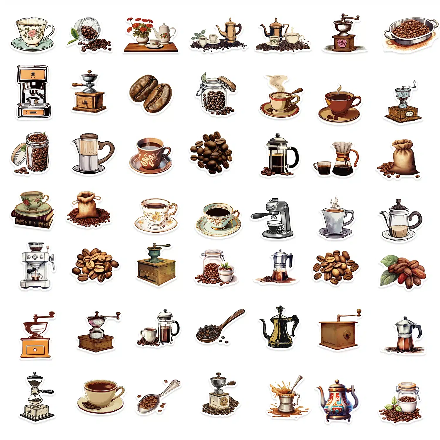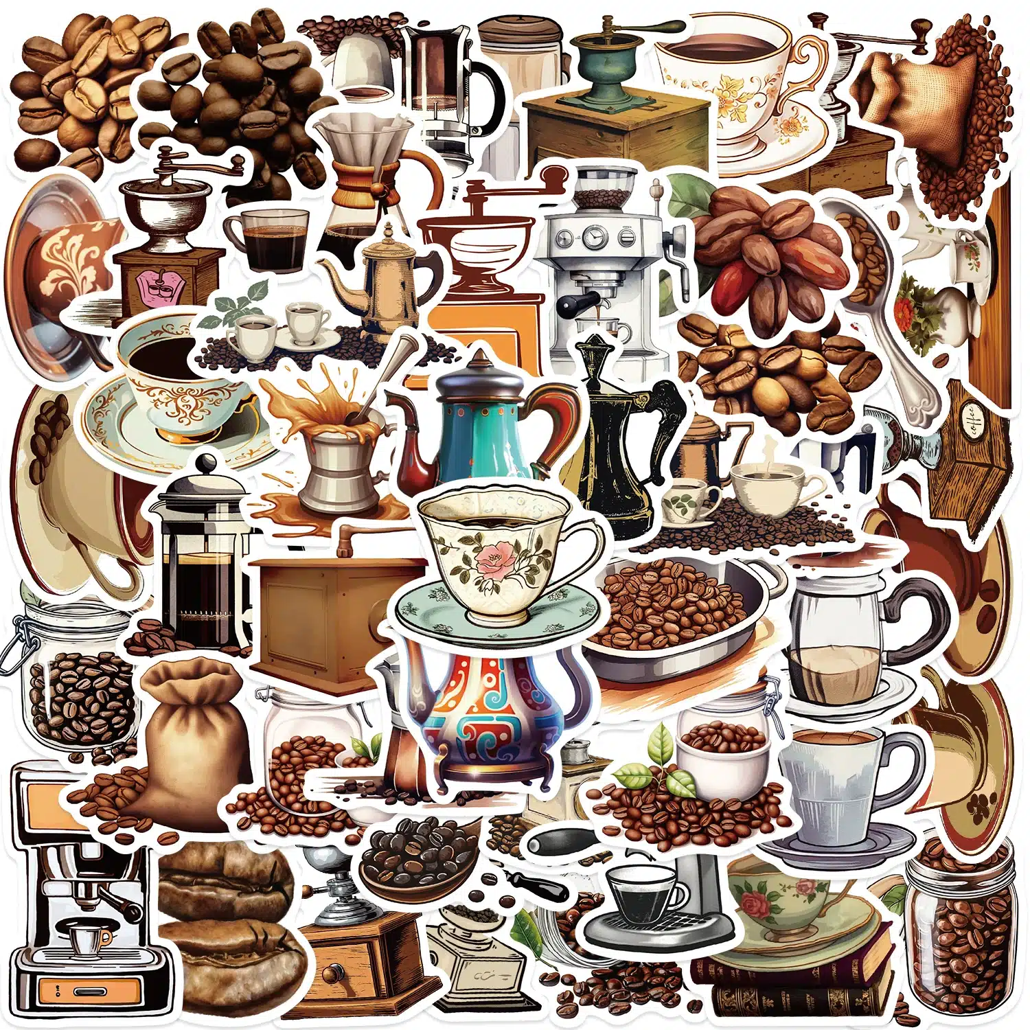 Le grand sticker mural cafe permet de transformer un mur blanc en coin cosy avec ses 50 autocollants en forme de grain de café.