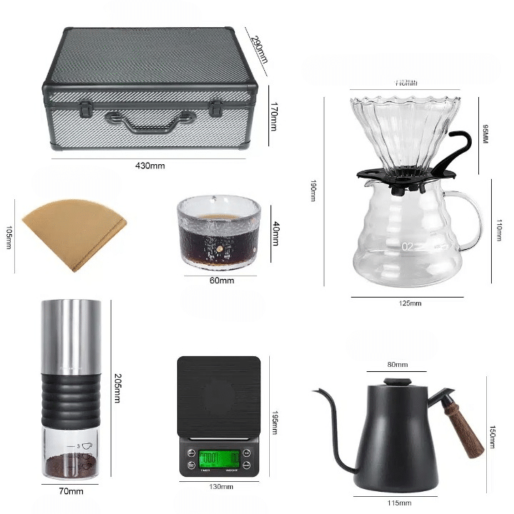 Coffret de 6 pièces, idéal pour les amateurs de café qui veulent tout avoir à portée de main.