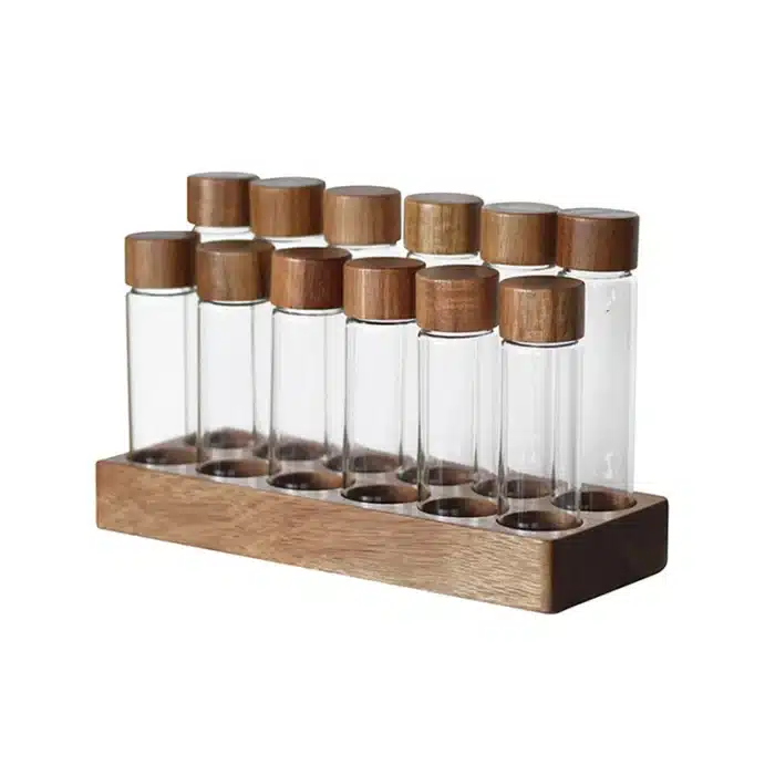 Le kit graine de cafe comprend un joli tube en verre accompagné d’un outil en bois pratique et naturel.