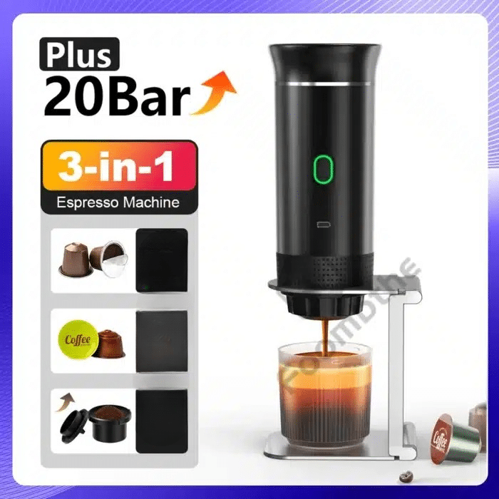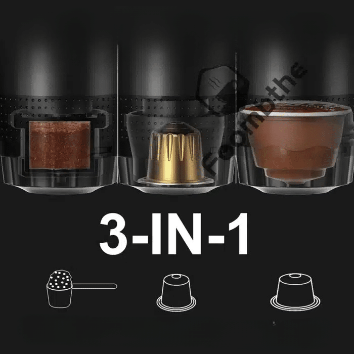 Votre machine à café expresso électrique portable sans fil est un modèle 3 en 1 compatible avec les petites capsules, les grandes capsules et le café moulu.