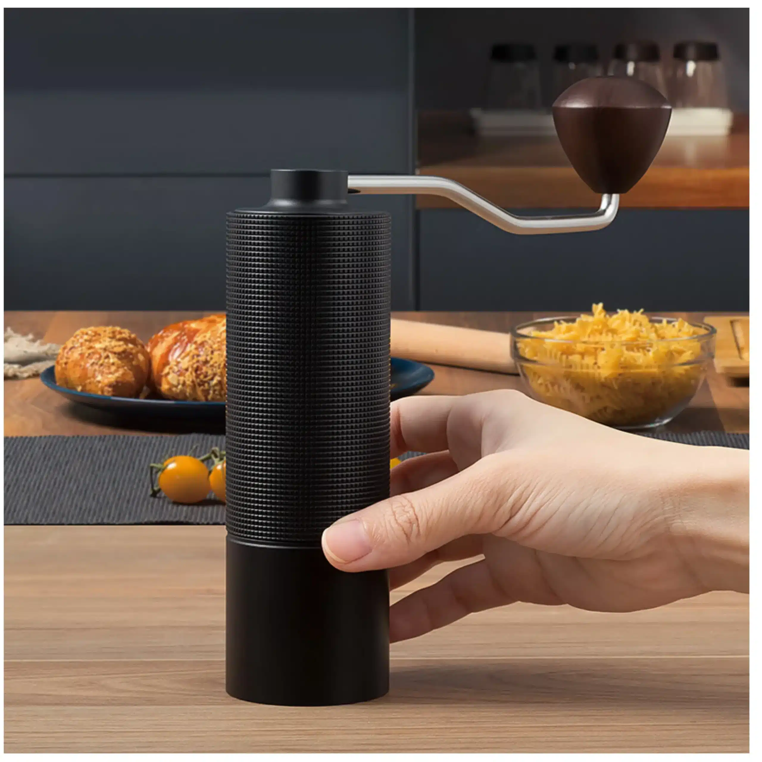Le meilleur moulin à café manuel pour espresso est équipé d’un double roulement pour garantir un broyage fluide et précis des grains de café.