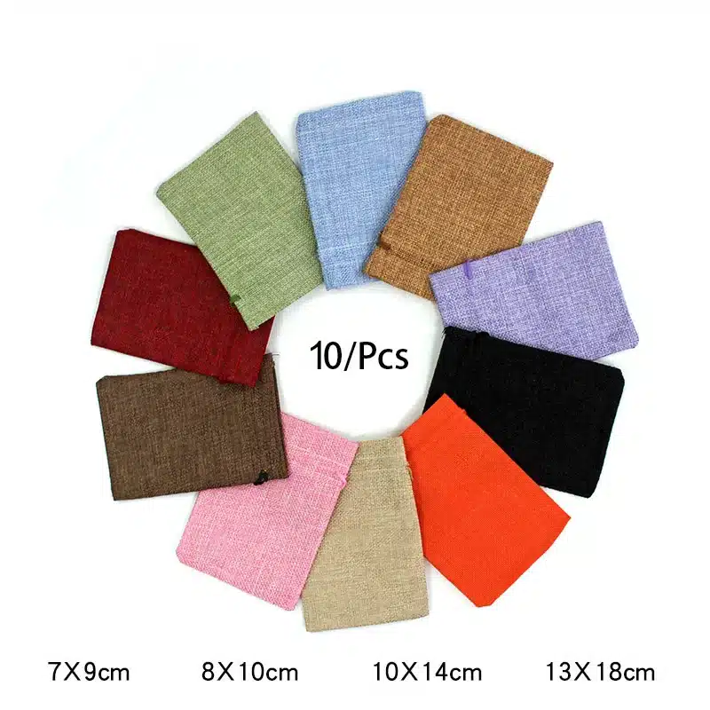 Voici un lot de 10 sacs en toile de jute naturelle, parfait pour emballer votre café avec style.