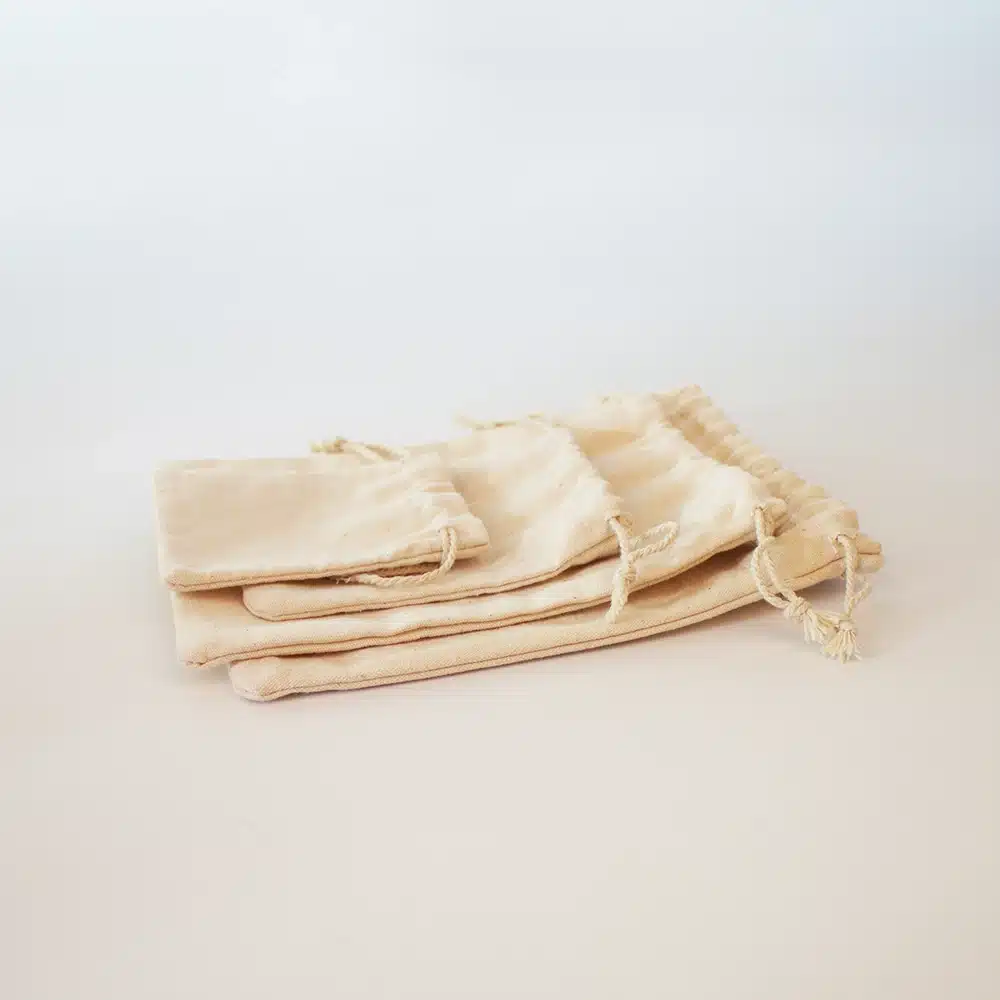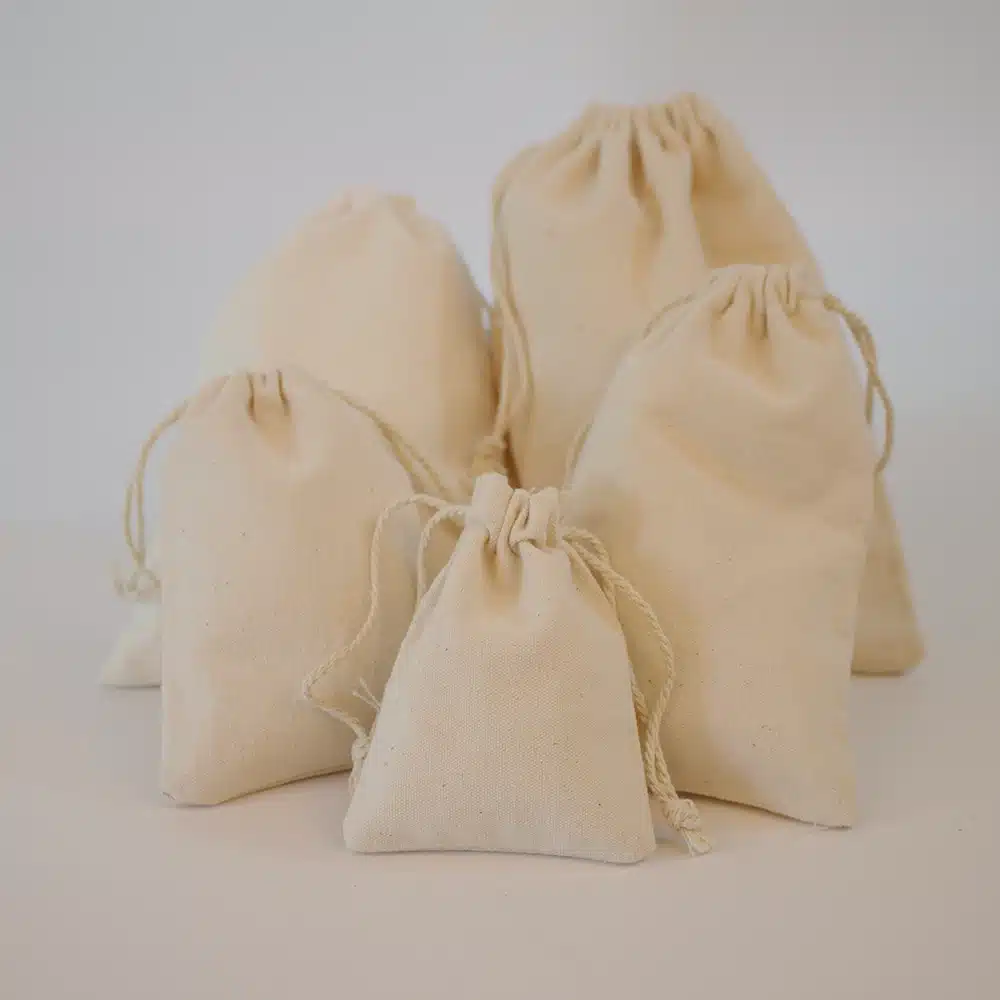 Ces sacs sont fabriqués en toile naturelle, un matériau écologique et résistant.