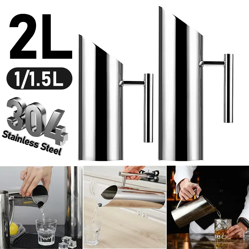 Fabriqué en acier inoxydable 304 de qualité, ce pichet résiste à la rouille, aux taches et garde tes boissons pures. C’est un matériau sûr, hygiénique et durable, parfait pour une utilisation quotidienne dans la cuisine ou au bar.