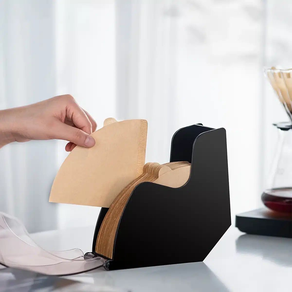 Le porte-filtre à café à couvercle rabattable ajoute une touche pratique et esthétique à ta cuisine.