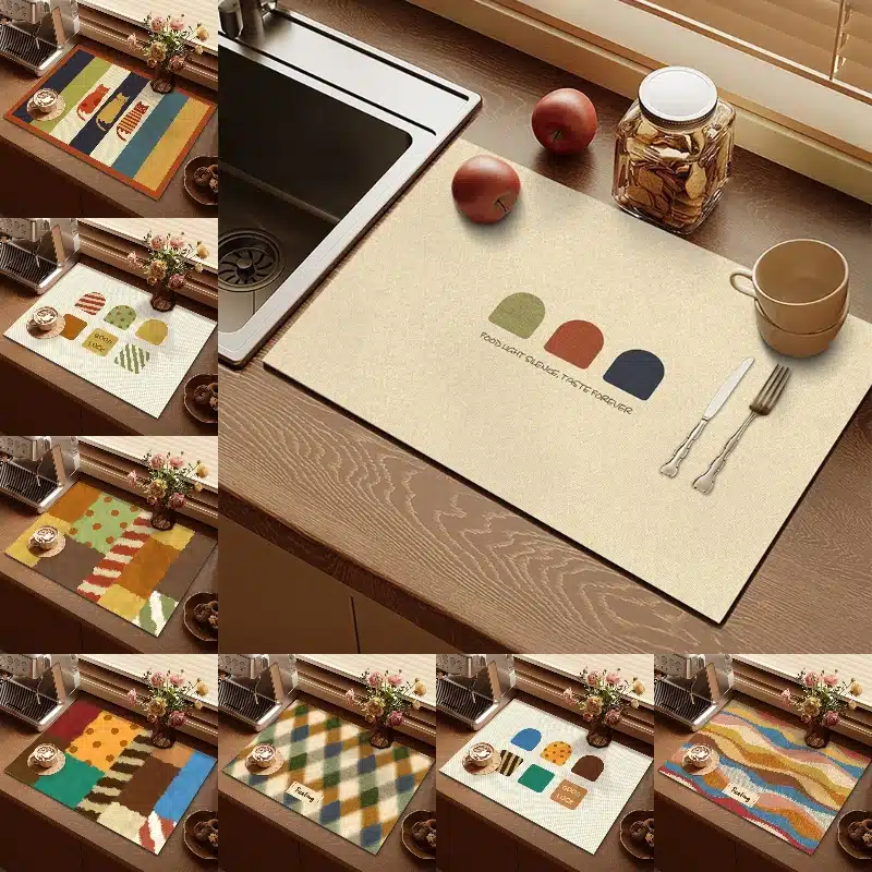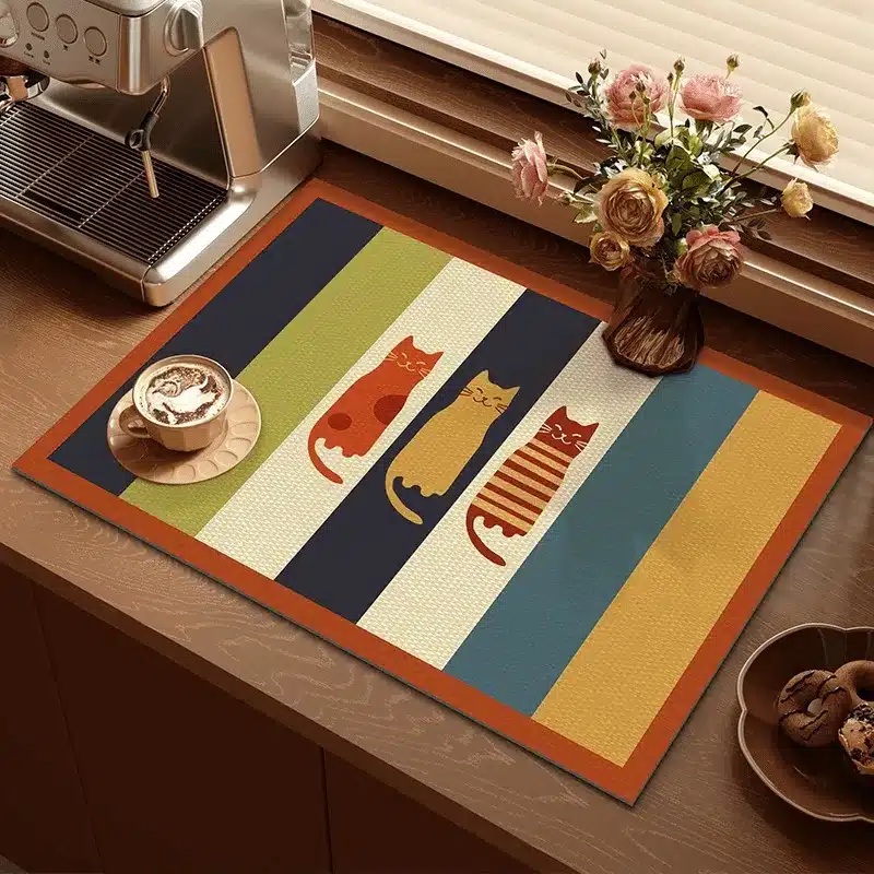 Que vous l’utilisiez pour le café du matin ou après la douche, ce tapis absorbant coloré allie praticité, style et simplicité au quotidien.