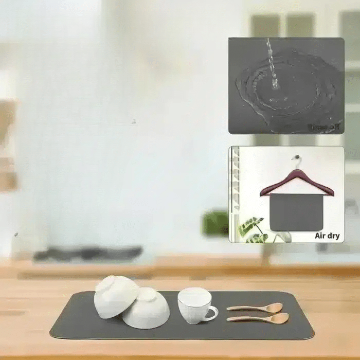 Le tapis absorbant coloré sèche la vaisselle, les verres ou même le petit linge en quelques minutes grâce à son absorption ultra-rapide.