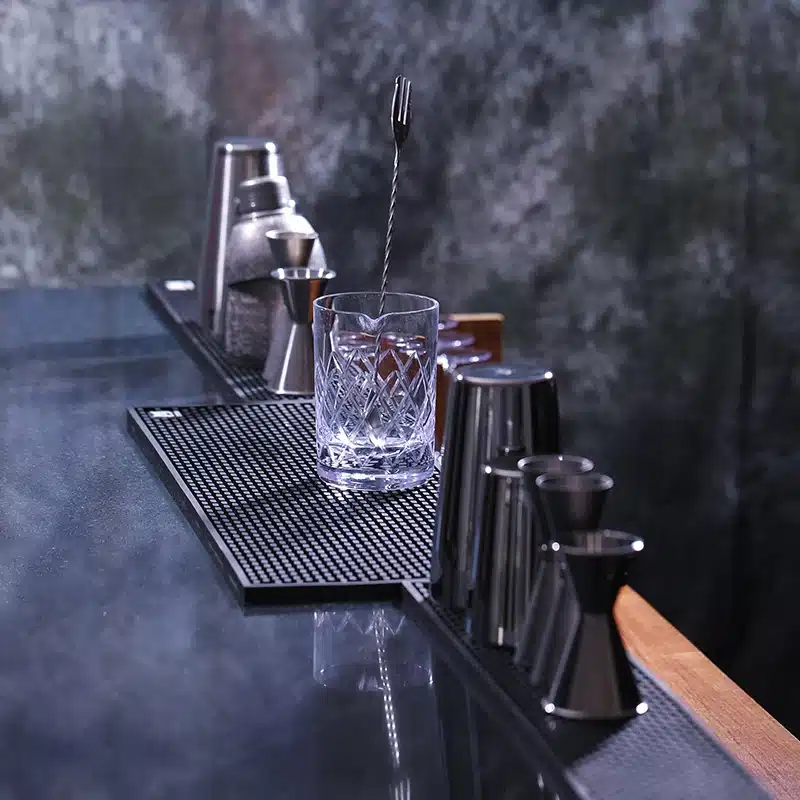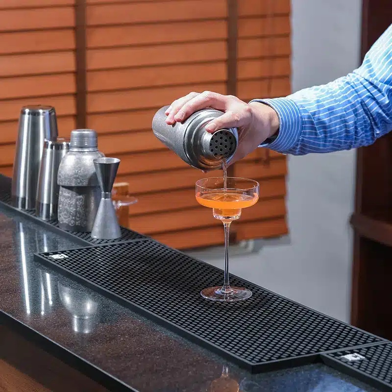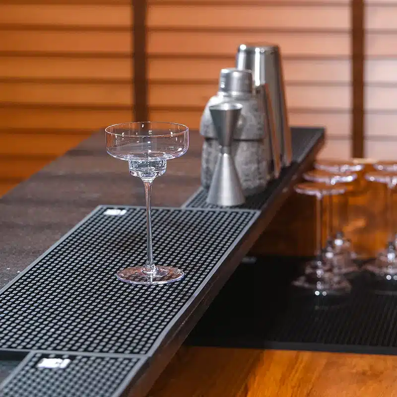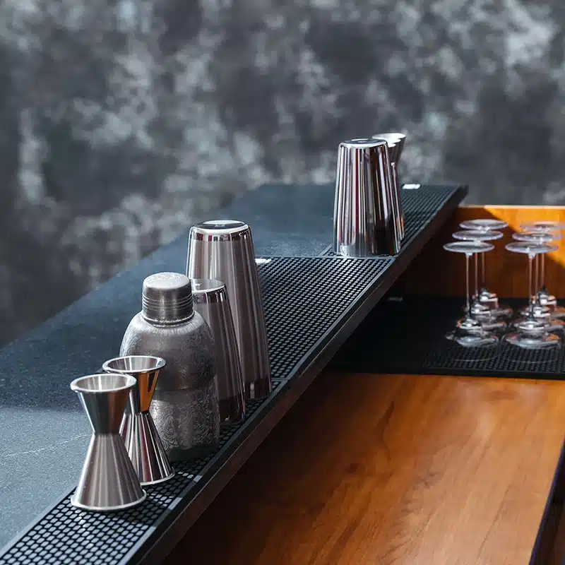 Ce tapis de bar à café est parfait pour créer une station café propre et bien organisée.