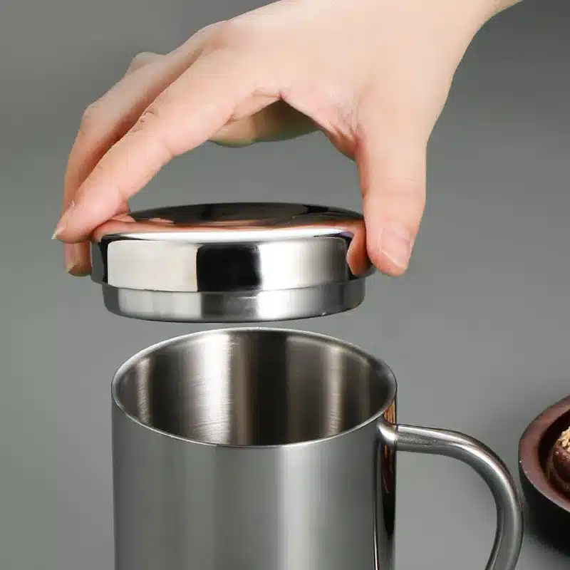 Grâce à sa double paroi en acier inoxydable 304, cette tasse à café anti-brûlure garde ta boisson au chaud bien plus longtemps qu’une tasse classique, sans te brûler les doigts.