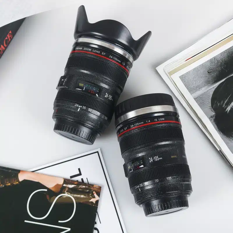 Mon mari photographe adore ! L’imitation objectif Canon est vraiment bien faite, on dirait le vrai. Il l’emmène même sur ses plateaux photo, ça amuse les clients. La contenance est parfaite pour un bon café du matin. Le revêtement extérieur imite bien la texture d’un vrai objectif avec les bagues de mise au point. Petit plus : le couvercle qui fait bouchon d’objectif, génial ! Arrivée en 8 jours dans un emballage soigné. Rapport qualité prix honnête pour ce type de produit original.