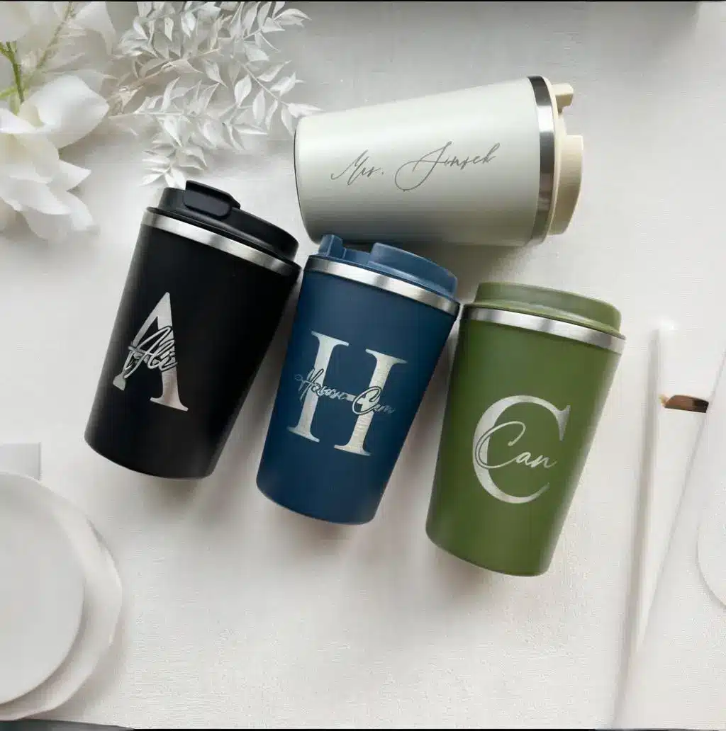 La gravure personnalisée avec un prénom ou un mot rend chaque tasse unique et transforme un objet du quotidien en cadeau qui a du sens.