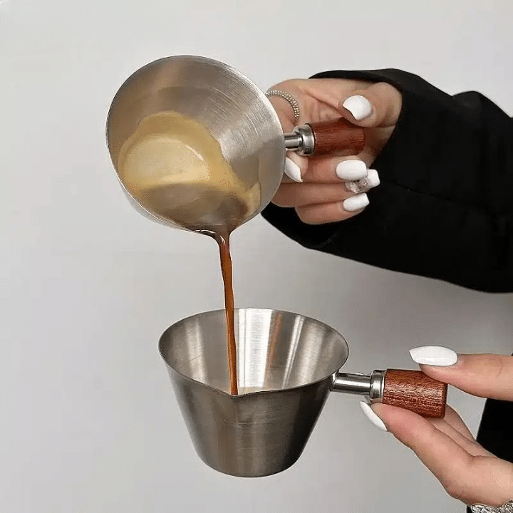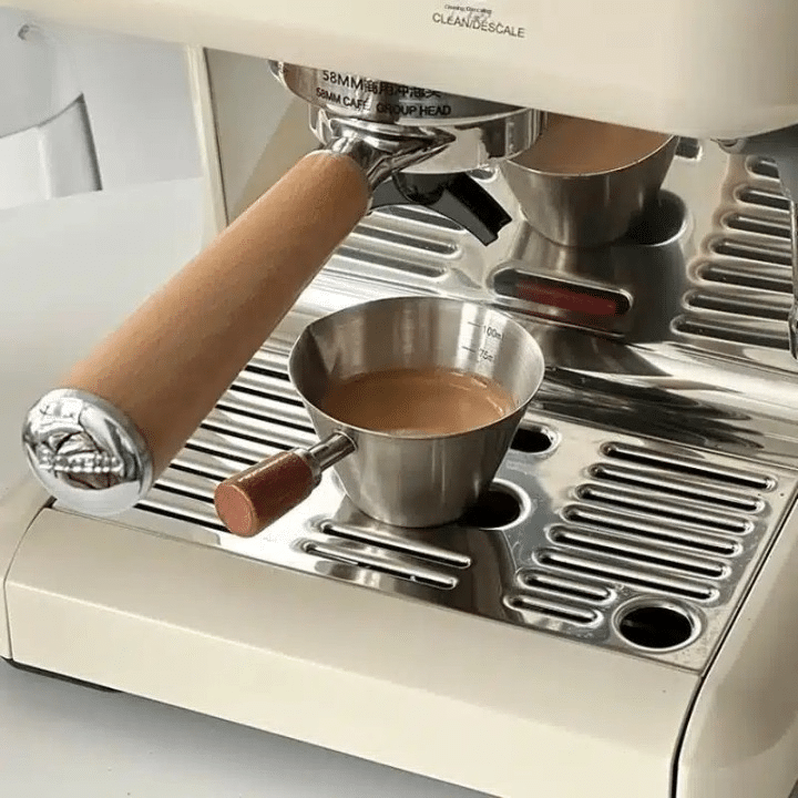 Cette tasse à mesurer en acier inoxydable est aussi compatible avec le lait, ce qui la rend utile pour doser aussi bien ton espresso que ta mousse de lait.