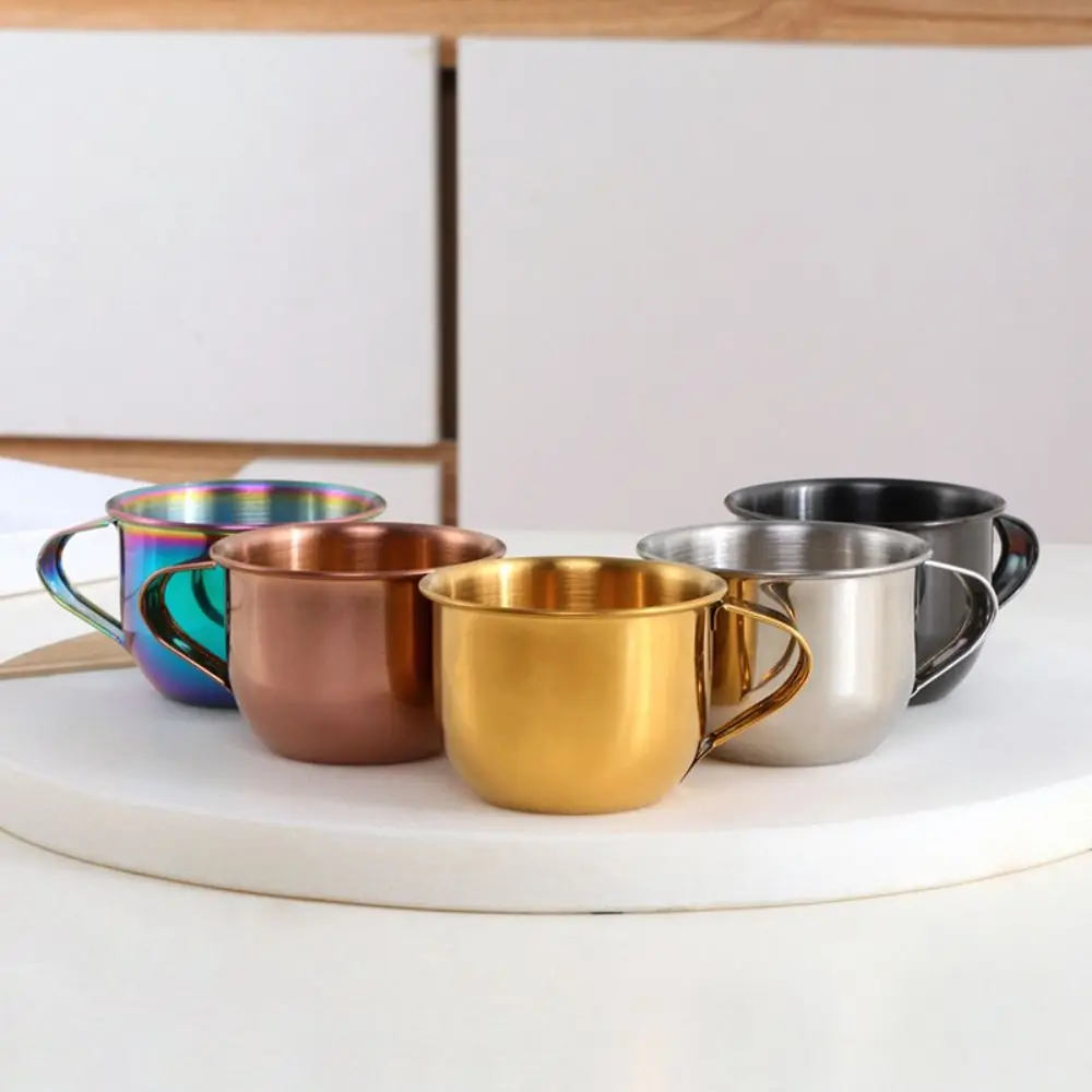 Cette tasse de 60ml avec poignée en acier inoxydable 304 est 100% neuve et de qualité premium, parfaite pour savourer un espresso serré ou un café style coréen en toute élégance.