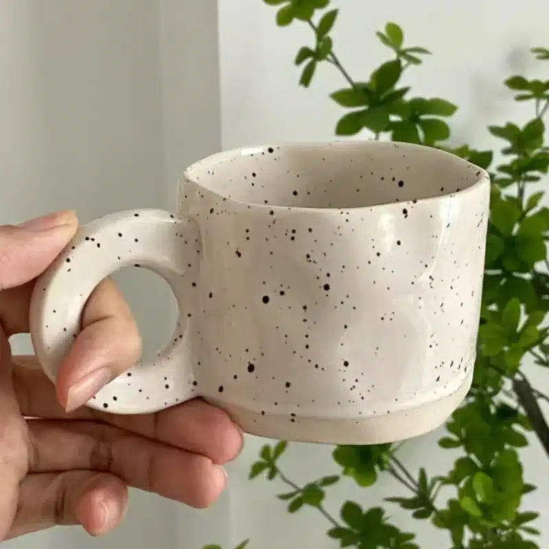 Les tasses en céramique poignée annulaire ajoutent une ambiance artistique à ton coin café.