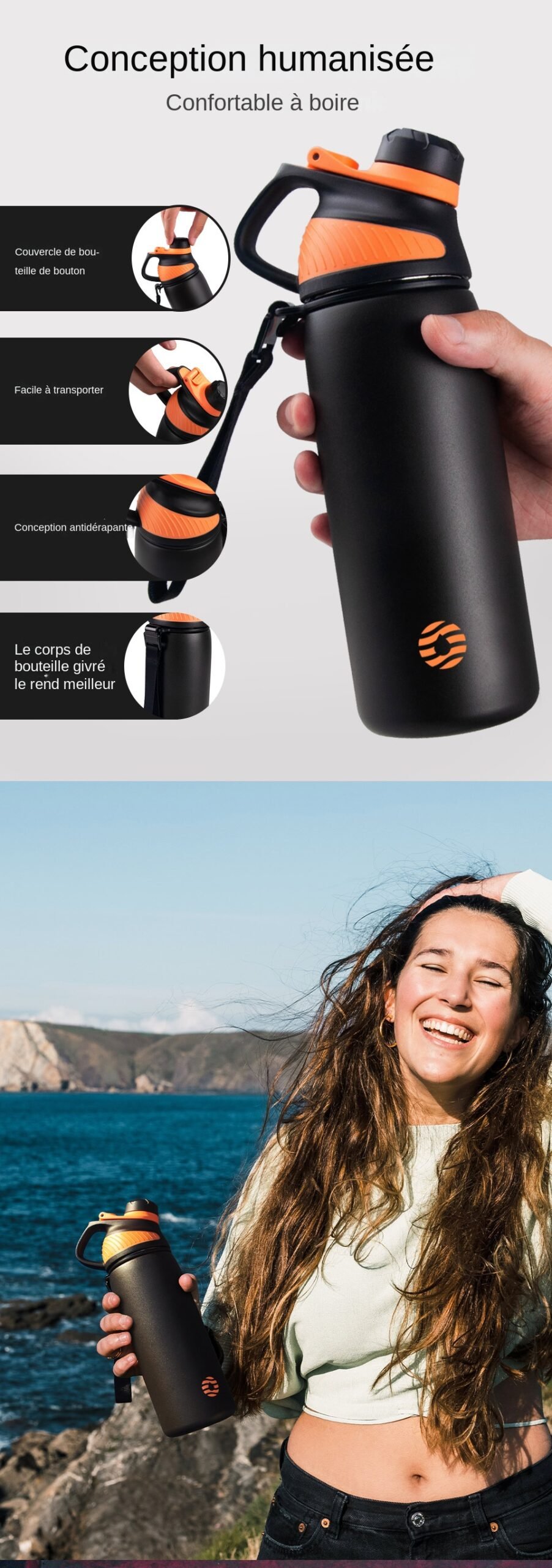 Sa tasse thermique vous permet de boire directement de la bouteille sans avoir besoin d’un autre récipient, ce qui est très pratique pour les moments de pause en pleine nature.