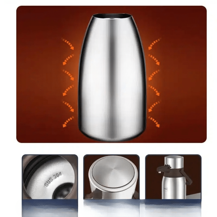 Le thermo a pompe est une bouteille thermos conçue en acier inoxydable 304, un matériau reconnu pour sa robustesse et sa résistance à la corrosion.
